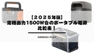 ポータブル電源 【2025年】定格出力1500Wのポータブル電源比較表。 この記事では、定格出力が1,500Wのポータブル電源を比較表にまとめ、さらにレーダーチャートやランキングも作成しています。 2023.10.06 ポータブル電源