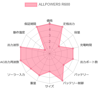 - 3位:ALLPOWERS R600(約3,500サイクル/リン酸鉄リチウムイオン)